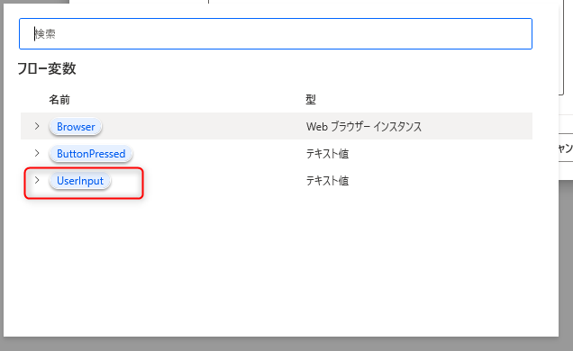ここでUserInputとButtonPressedという2つの変数が生成されている。